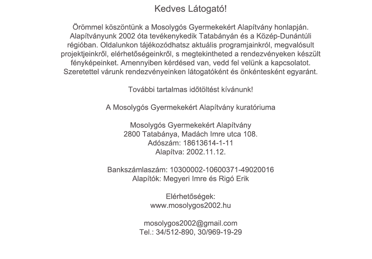 Örömmel köszöntünk a Mosolygós Gyermekekért Alapítvány honlapján.